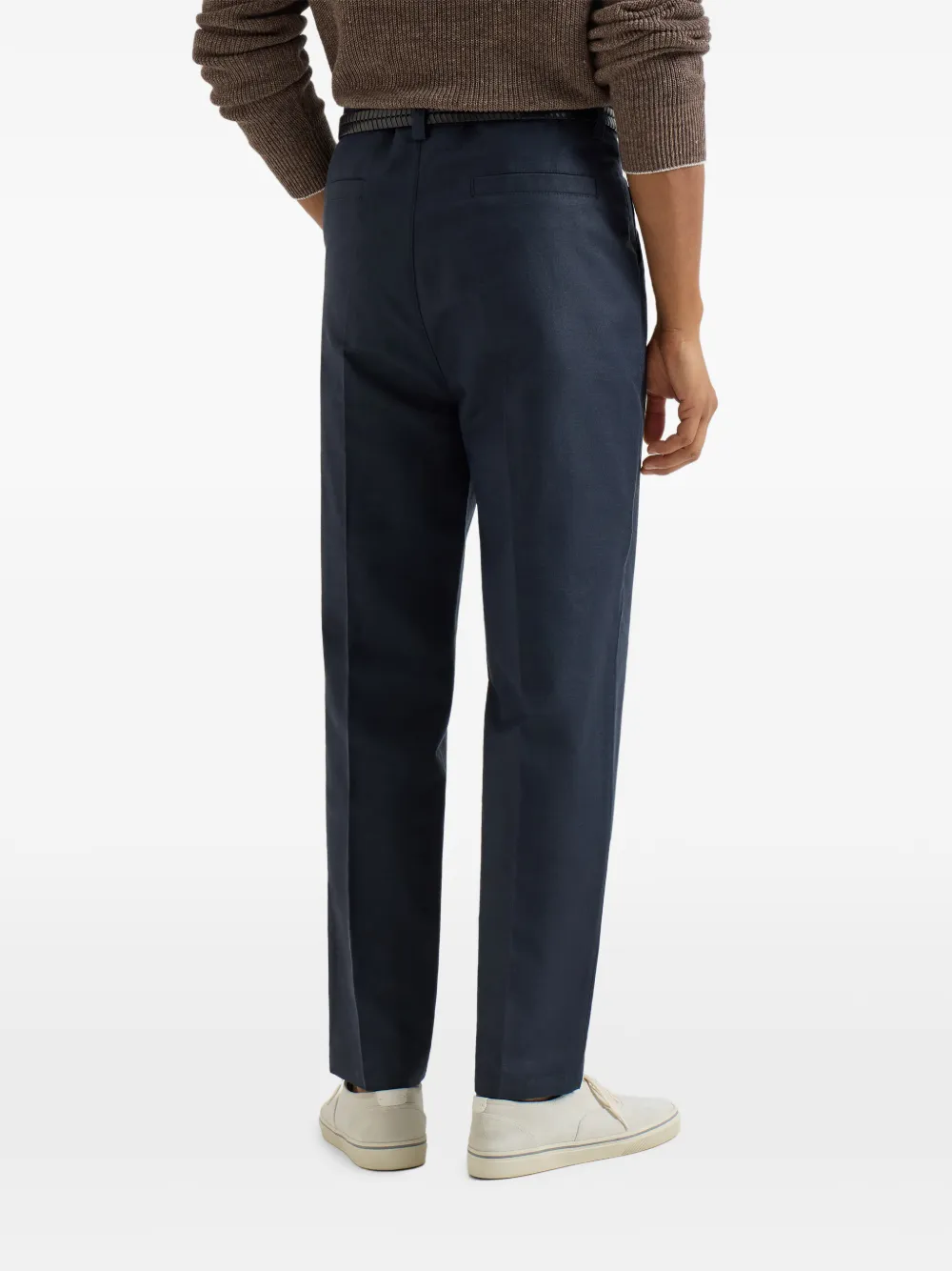 New Season Brunello Cucinelli belt-loops tailored trousers Made in Italy Highlights navy blue button fastening belt loops side seam pockets Composition Cotton 69%, Linen/Flax 31% Washing instructions Read Manufacturer Guidelines Product IDs FARFETCH ID: 32759383 Brand style ID: MH262H0660C2485