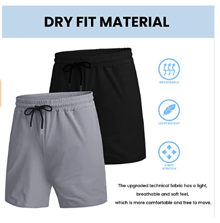 High-quality lightweight four-way stretch fabric with moisture-wicking and quick-drying technology makes these gym shorts comfortable and stress-free during workouts and other activities.