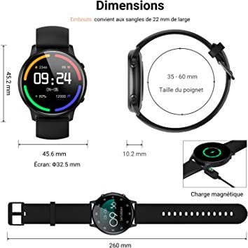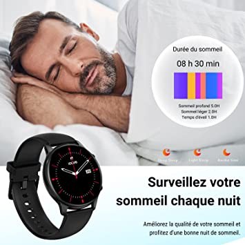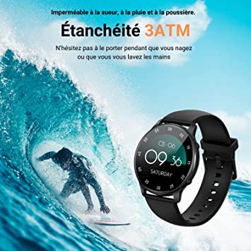 HOAIYO Smart Watch for Android iOS Men and Women, 1.3 Inch Full Touch Screen, 3 ATM Waterproof Fitness Wristband, Heart Rate, Sleep Monitor, SpO2, Music Control, Sports Watch...(Black, 1.3 Inch)