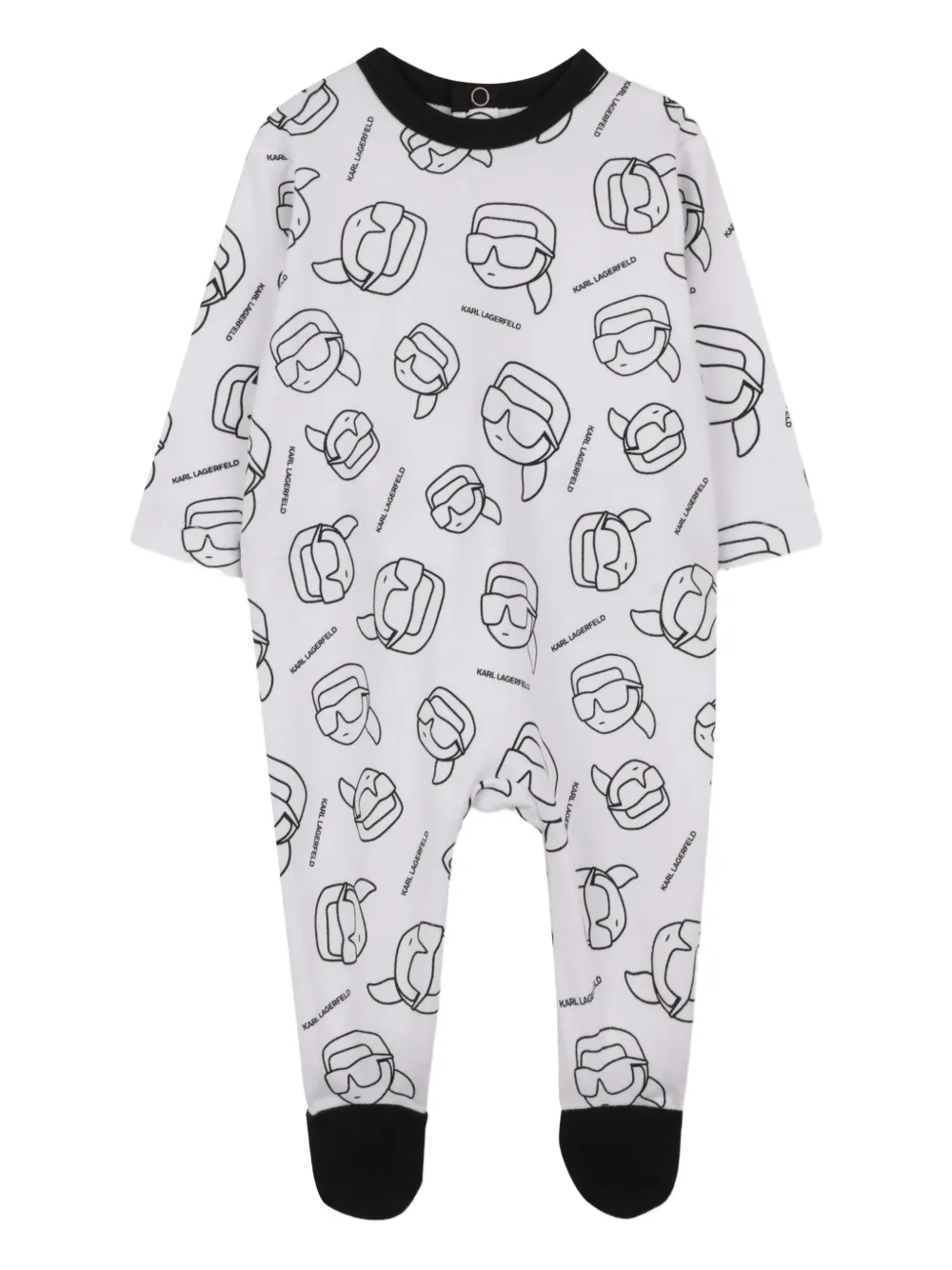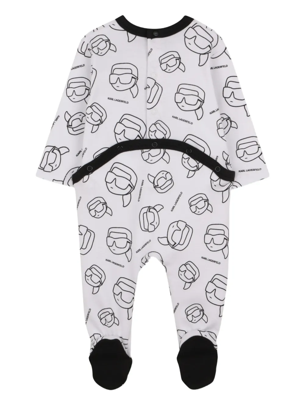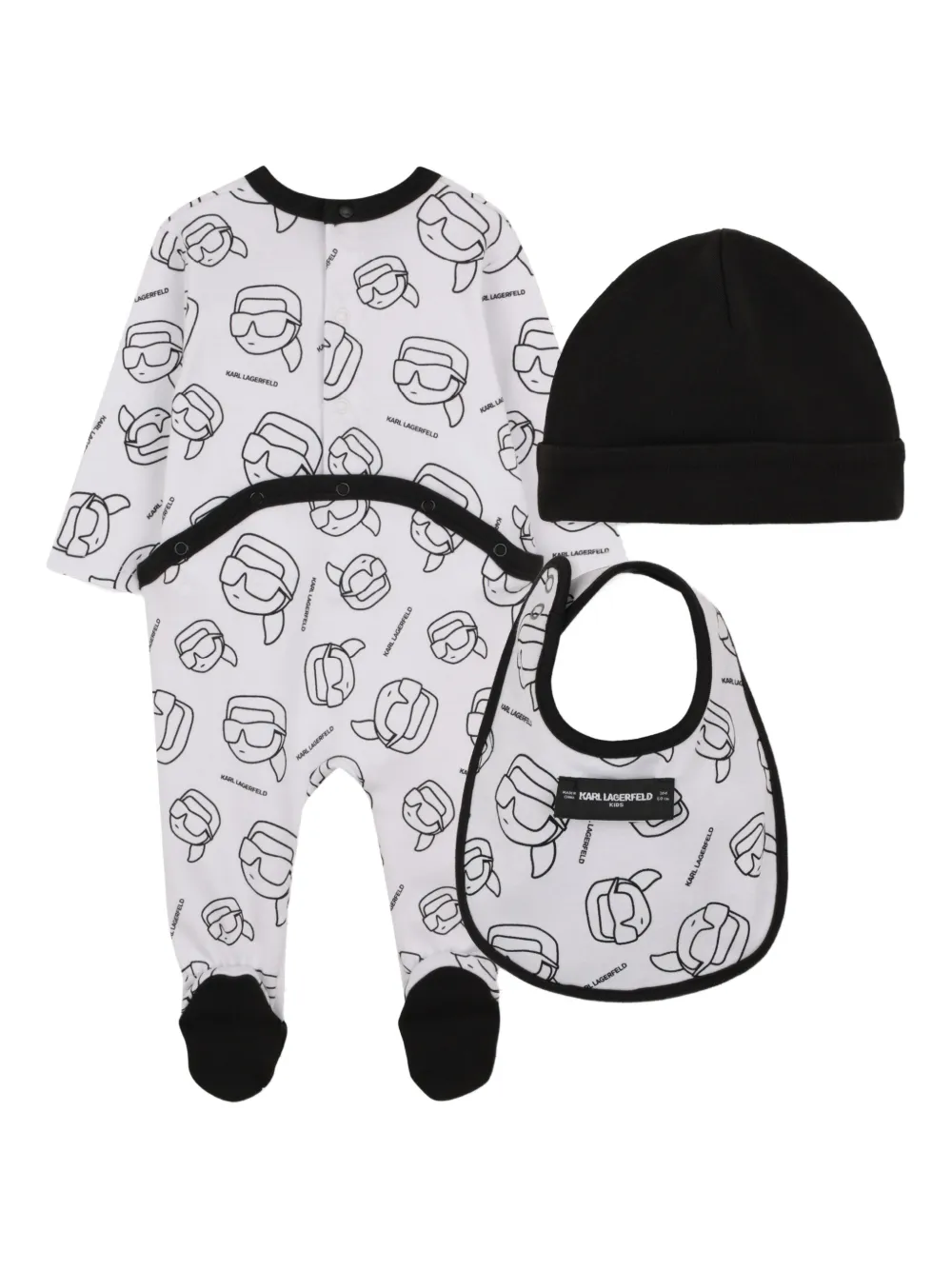 New Season Karl Lagerfeld Kids Ikonik Karl babygrow set Imported Highlights white and black set of three Ikonik Karl print round neck long sleeves press-stud fastening Composition Organic Cotton 100% Washing instructions Machine Wash Product IDs FARFETCH ID: 32983682 Brand style ID: Z31053