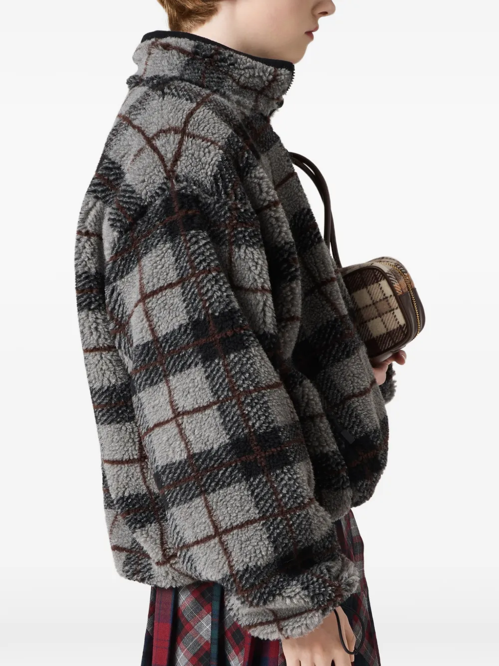 checked-pattern teddy-fleece jacket
