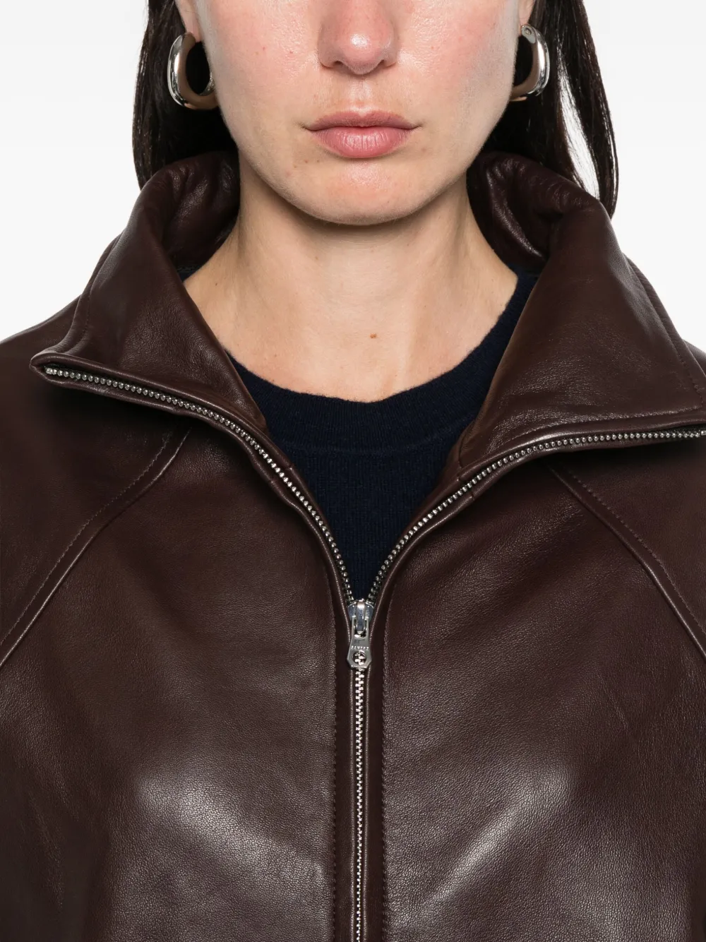 zip lambskin leather jacket