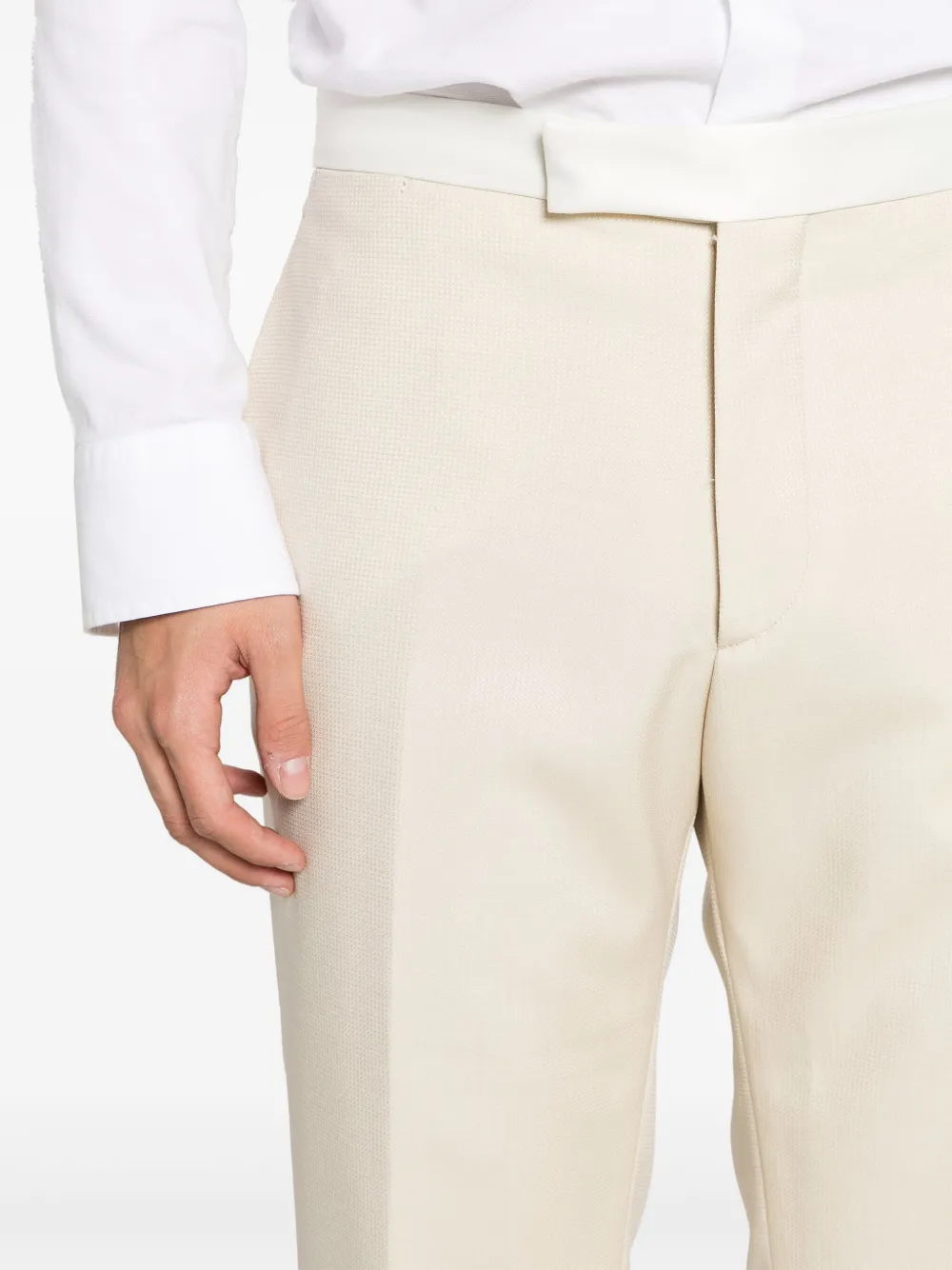 two rear button-fastening jetted pockets